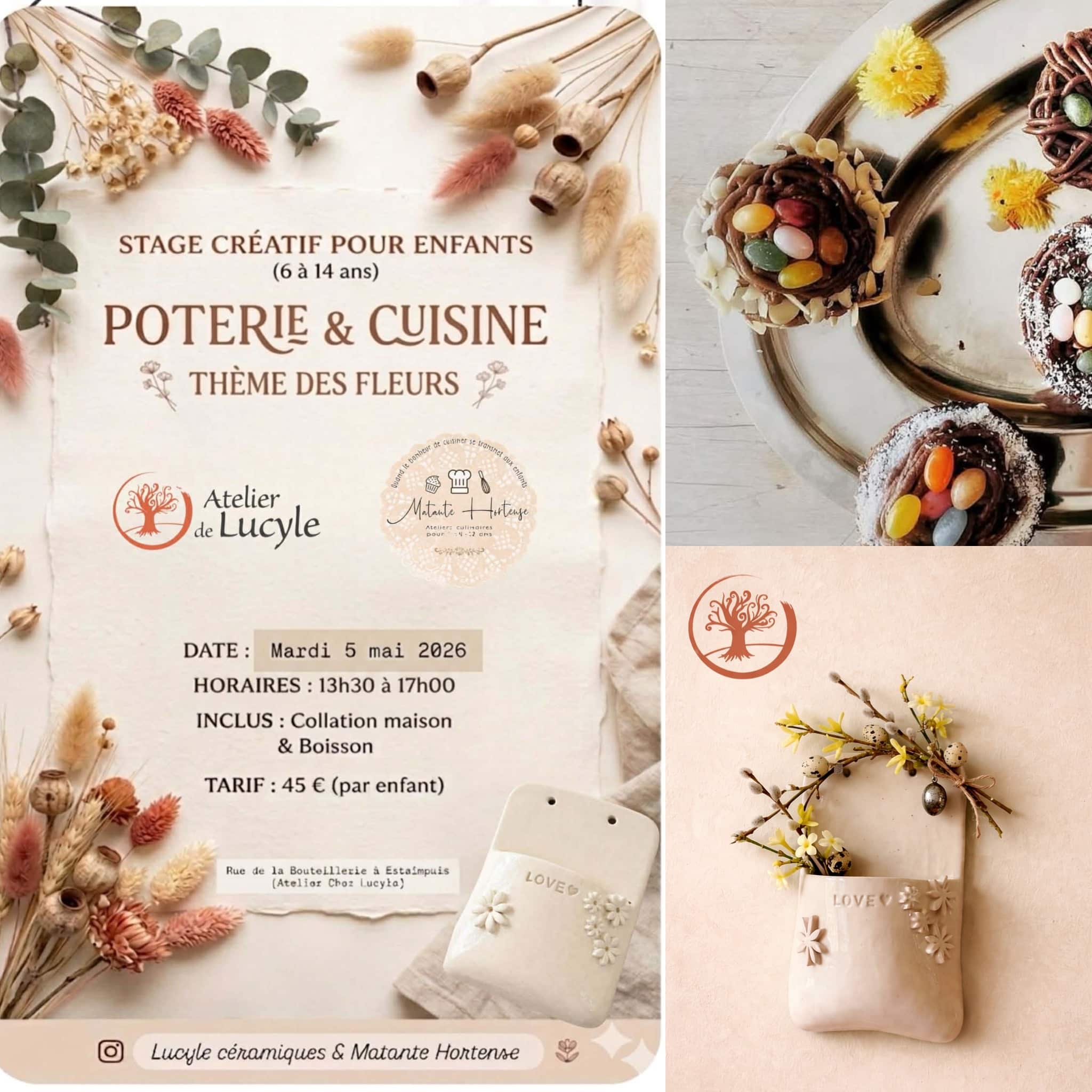 Animation de 3h30, réalisation d’une poterie murale et de cups cakes « spécial Printemps » avec Matante Hortense.